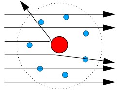 이 당시 우라늄에서 눈에 보이지 않는 무언가 강한 에너지를 지닌 입자가 방출된다는게 발견되었고 이를 알파입자라고 부르고 있었습니다 (사실은 헬륨이온) 러더퍼드는 이 알파입자가 물질 속을 통과할 때 어떤 일이 생길 지 궁금했습니다. 그림과 같이 알파입자가 금속 막을 통과하면 얼마나 휘어질 수 있을지 알아보려 했던 거죠. 그러나 실험 결과는 정말 말도 안되는 것이었습니다.